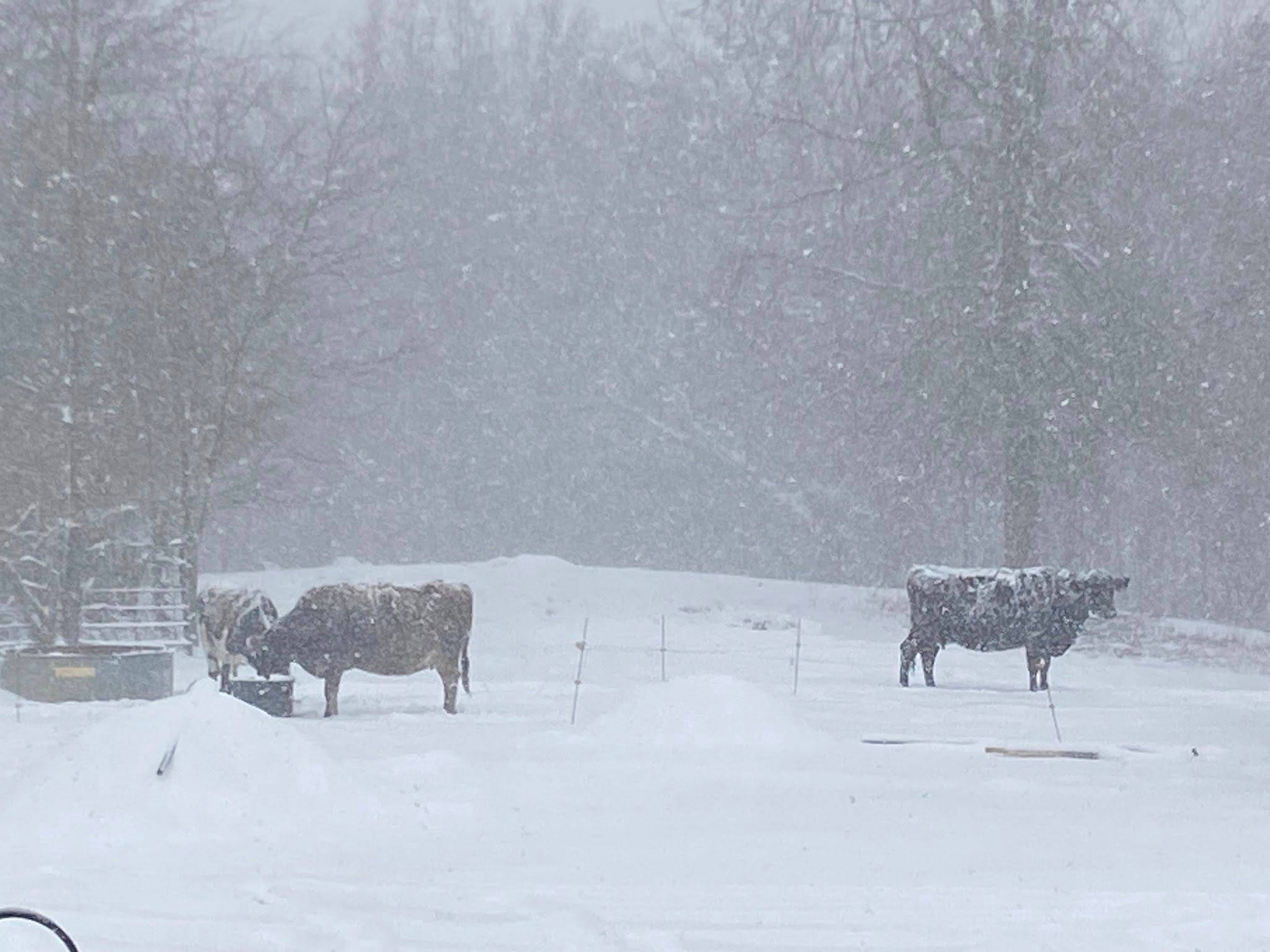 Happy Cows Enjoying the First Snow of the Season